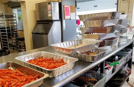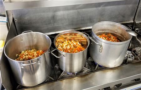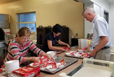 Club members serve food at St. George's Episcopal Church Soup Kitchen.